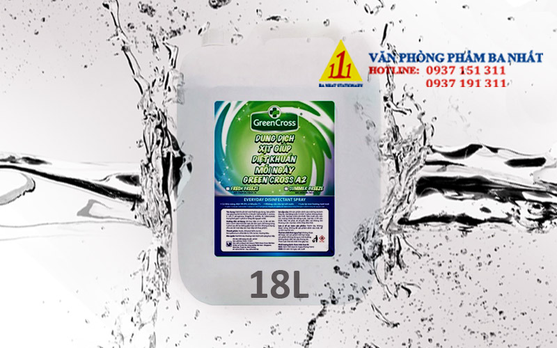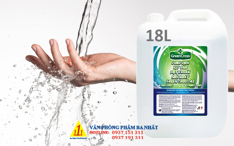 Nước xịt sát khuẩn Green Cross A2 can 18 Lít chính hãng – là dung dịch vệ sinh sát khuẩn khô dễ bay hơi sau khi sử dụng và không cần rửa lại với nước, sử dụng rất nhanh chóng và tiện lợi. Sản phẩm có nhiều dung tích lựa chọn, chai mini treo túi xách, chai nhỏ bỏ túi quần, chai xịt để bàn, can lớn dùng sang chiết ra chai nhỏ… thuận tiện cho việc vệ sinh đồ dùng, vật dụng, bề mặt bàn ghế, tay nắm cửa, cầu thang, thang máy, làm sạch tay… ngay sau khi tiếp xúc với những bề mặt nơi công cộng.