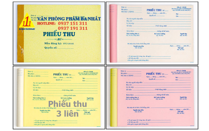 Phiếu thu, phiếu thu tiền, phiếu thu 3 liên